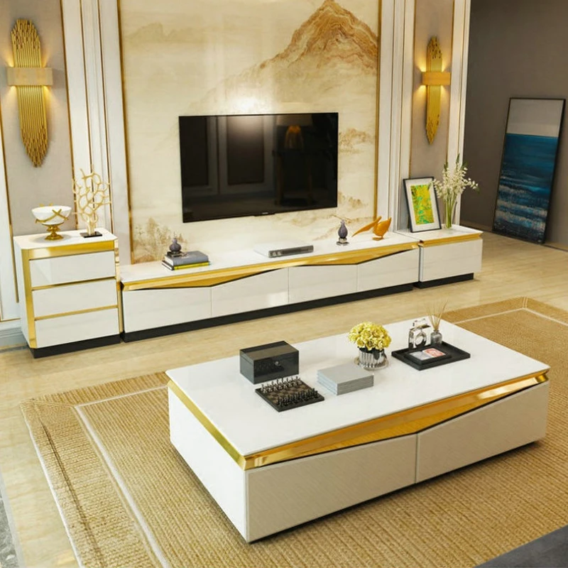 المنتجات ذات الصلة ل TV Stands و طاولة شاي الأسود/الأبيض المعيشة غرفة التلفزيون حامل شاشة mueble stalinite الذهب الفولاذ خزنة من الصلب + منضدة تليفزيون + القهوة سنترو الجدول
