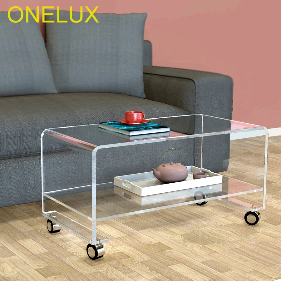 معرض من واضح شلال أكريليك المتداول التلفزيون الوقوف على عجلات ، وسيت الجانب عرضية القهوة الشاي الجداول-2 حجم خيارات