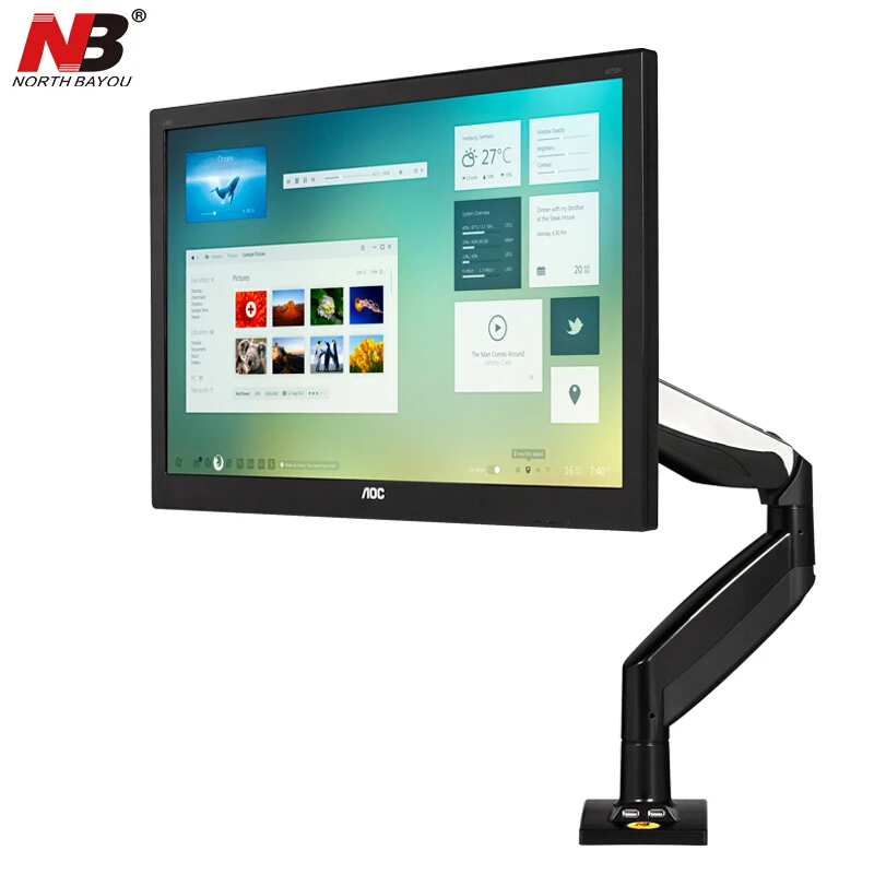 أرغب في شراءمعلومات اضافية NB F85A رصد حامل سطح العمل الميكانيكية الربيع رفع حامل تليفزيون 22-32 بوصة طويلة الذراع كامل الحركة LCD حامل قاعدة مع 2 منفذ يو اس بي