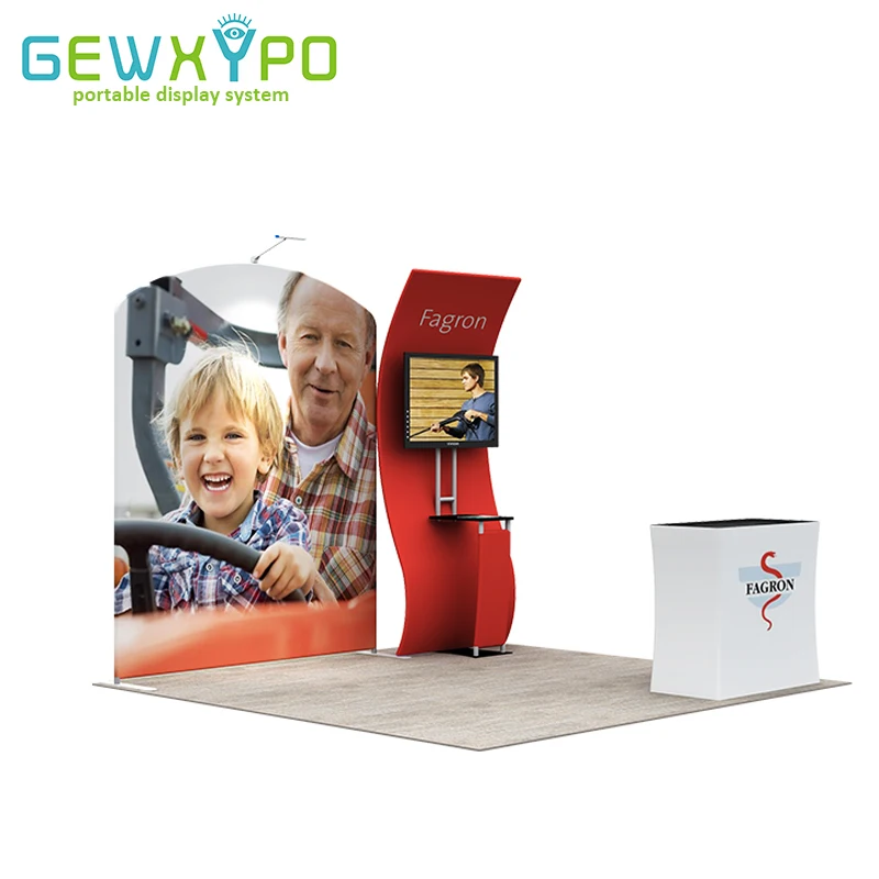 معرض ل 10ft * 10ft كشك الإعلان سهلة النسيج راية الألومنيوم أنبوب عرض الحائط مع حامل تلفاز و غطاء واقٍ مزخرف لهاتف آيفون المنصة (تشمل جميع)