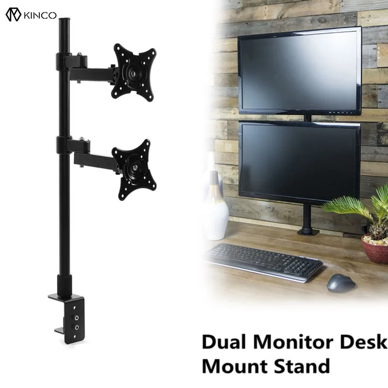 استعارات ل الشاشة المزدوجة حامل دوران مزدوجة الذراع قابل للتعديل سطح المكتب حامل لجهاز الكمبيوتر في غضون 14-24 بوصة التلفزيون جبل قوس المشبك
